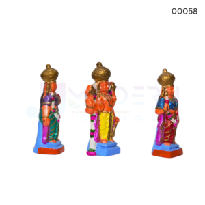 The Urchavar Perumal doll set is a beautifully handcrafted 3‑piece collection made from eco‑friendly clay, each standing at 7 inches in height with a combined weight of 0.950 kg. Featuring vibrant hand‑painting and traditional detailing, the set represents Lord Perumal in his ceremonial form along with divine consorts. Perfect for Navaratri Golu displays, temple décor, and devotional collections, this clay set embodies cultural heritage, artistry, and spiritual grace, making it a meaningful addition to any festive or sacred setting.
