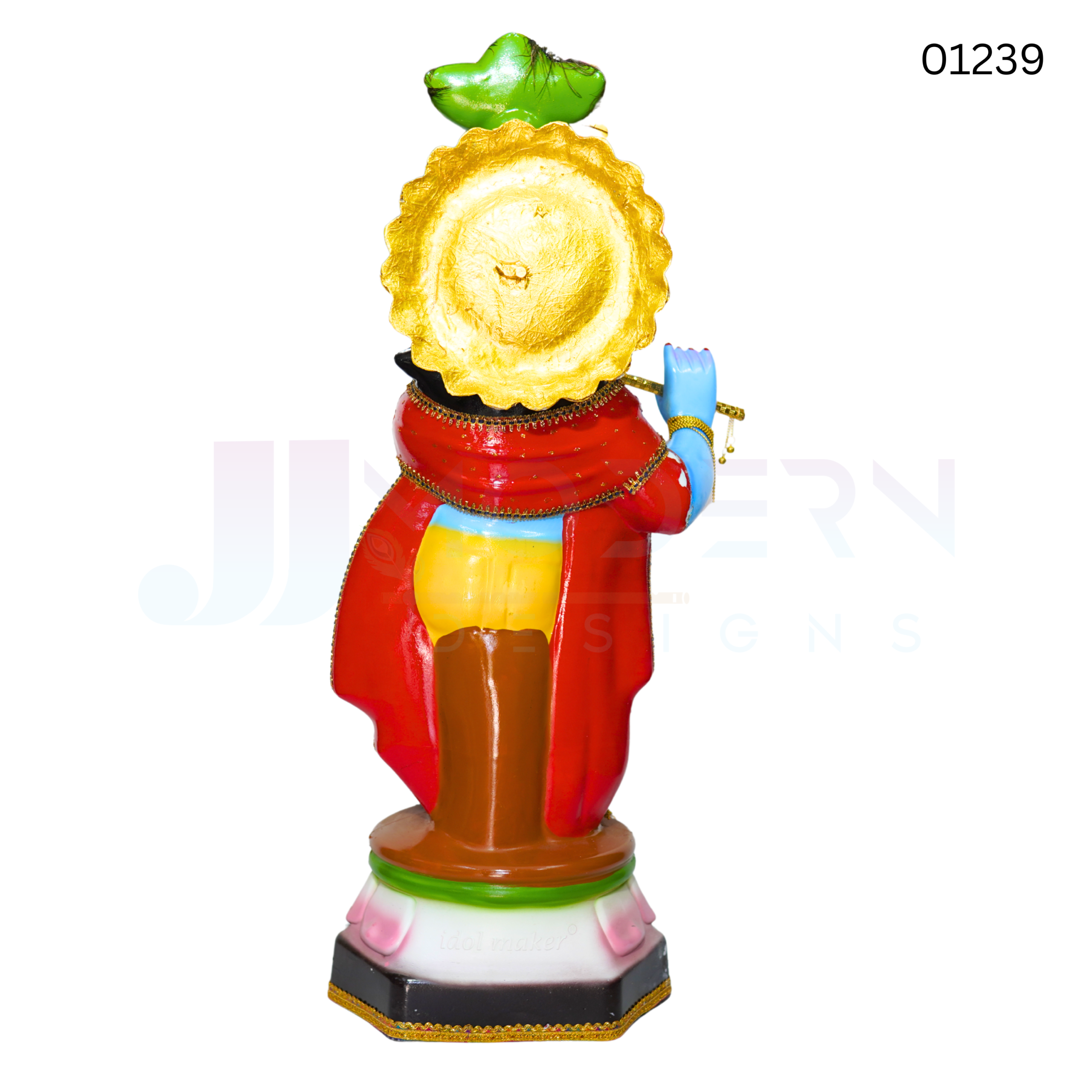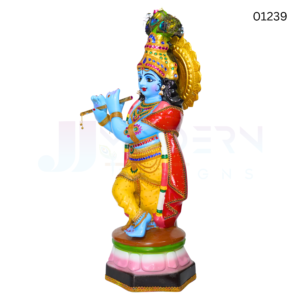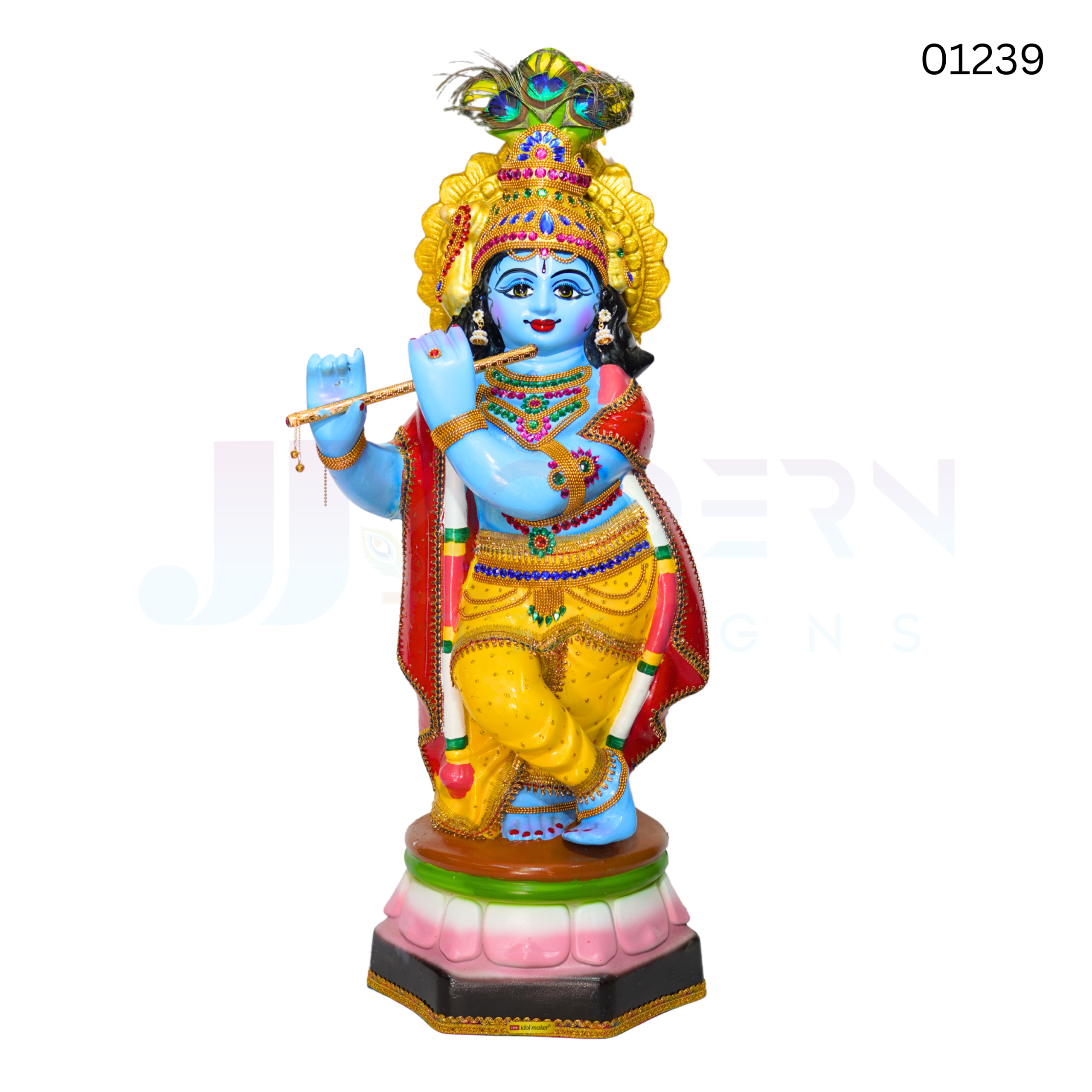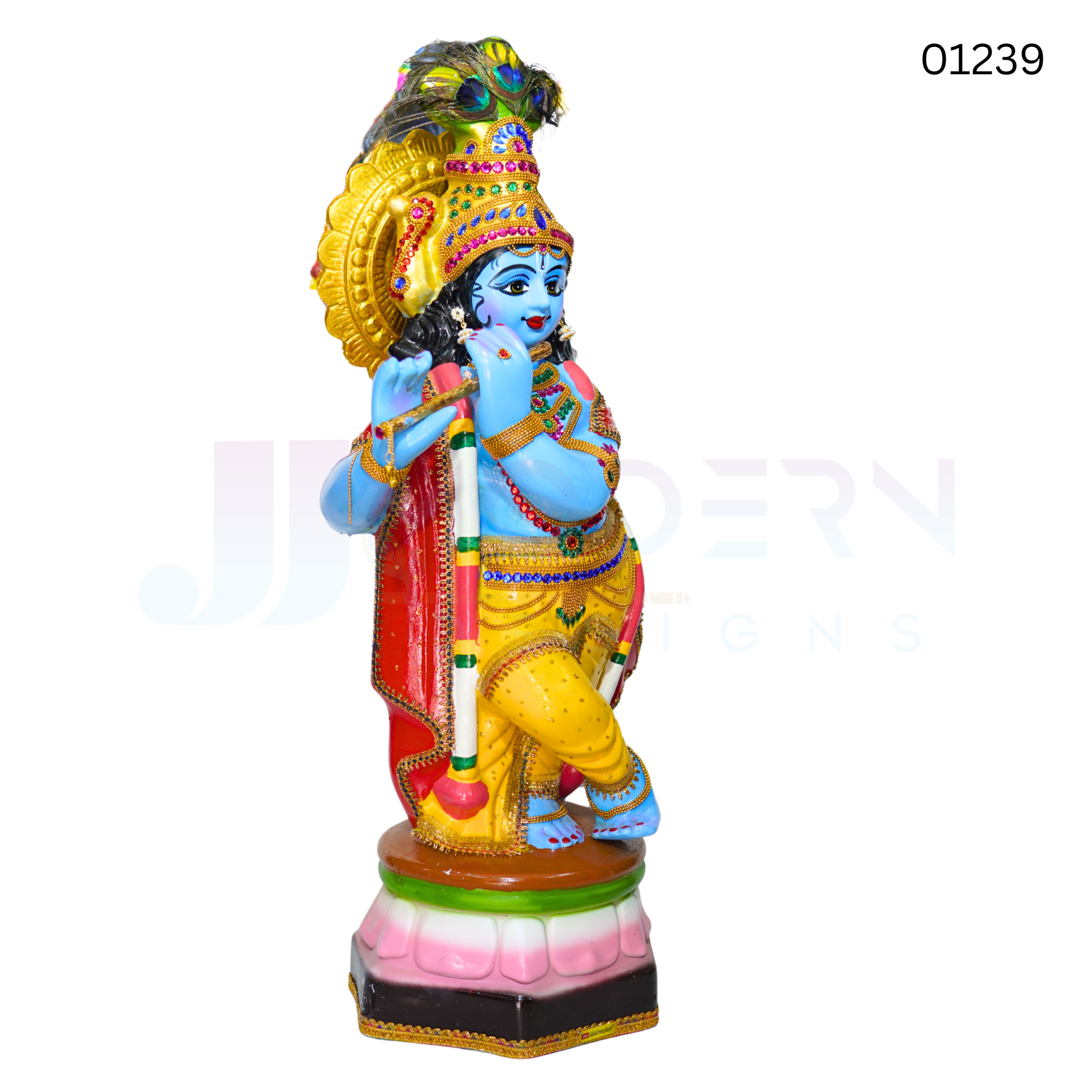 The Krishna statue, standing at an impressive 32 inches and crafted from durable fiber resin, is a magnificent representation of devotion, artistry, and cultural heritage. Its medium size makes it versatile—large enough to command attention as a centerpiece in a temple or living space, yet manageable enough to be placed on a home altar or in a spiritual corner. The use of fiber resin as the material ensures a smooth finish, lightweight handling, and long-lasting durability, making it a practical choice for both worshippers and collectors. Unlike heavier stone or brass idols, fiber allows artisans to achieve intricate detailing while keeping the statue easy to move, clean, and maintain. This balance of beauty and practicality makes fiber statues increasingly popular among devotees who seek elegance without compromising convenience.