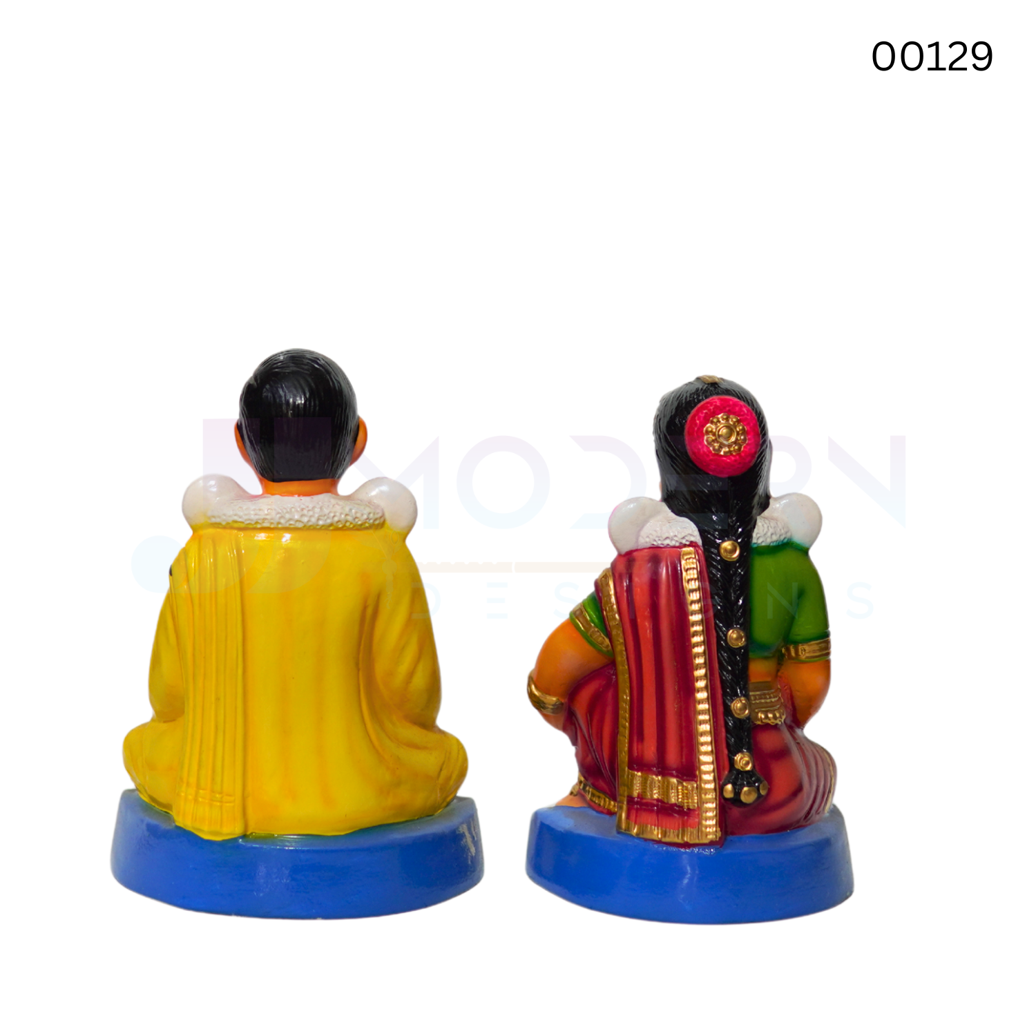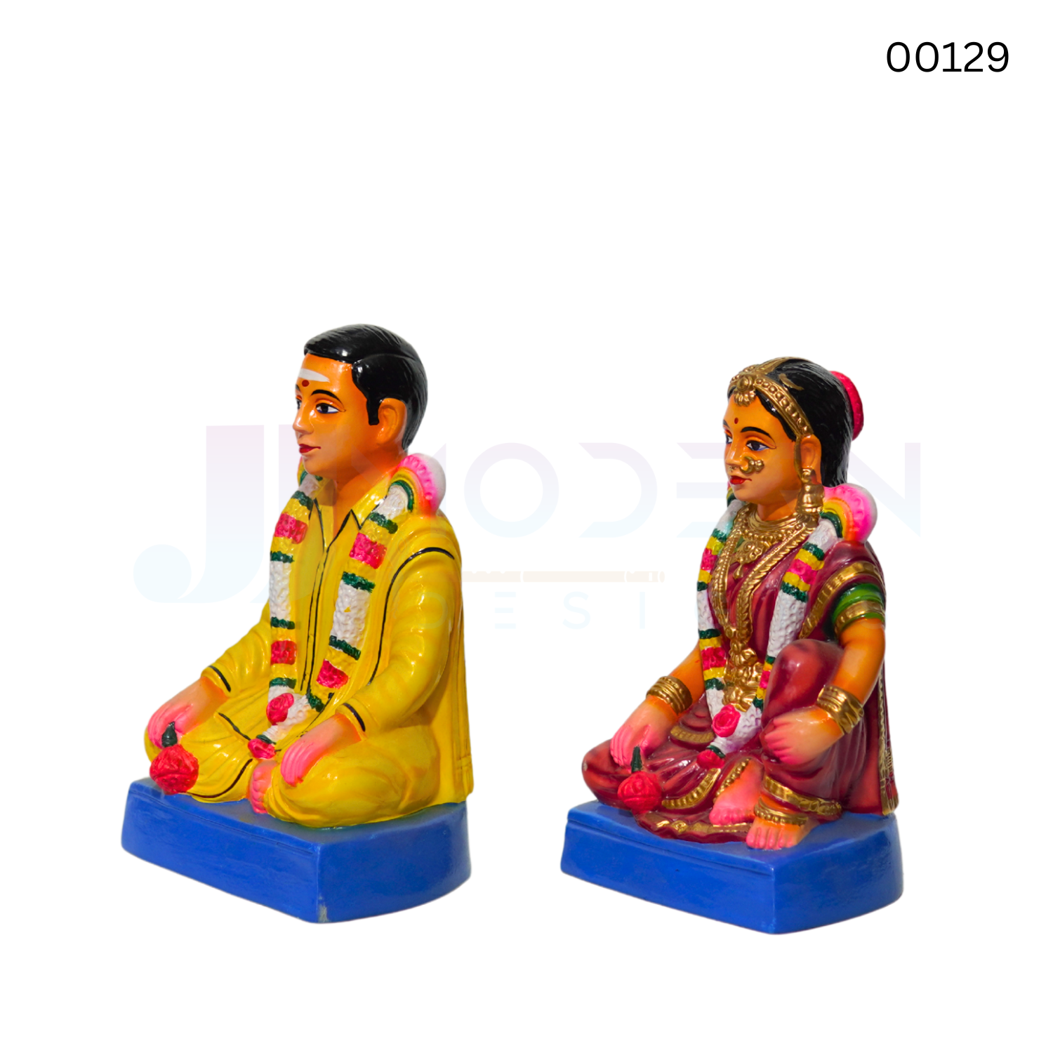 Each is hand‑painted with vibrant colors that highlight traditional attire, ornaments, and expressions. The artistry reflects the grandeur of South Indian weddings, with careful attention to devotional detailing.